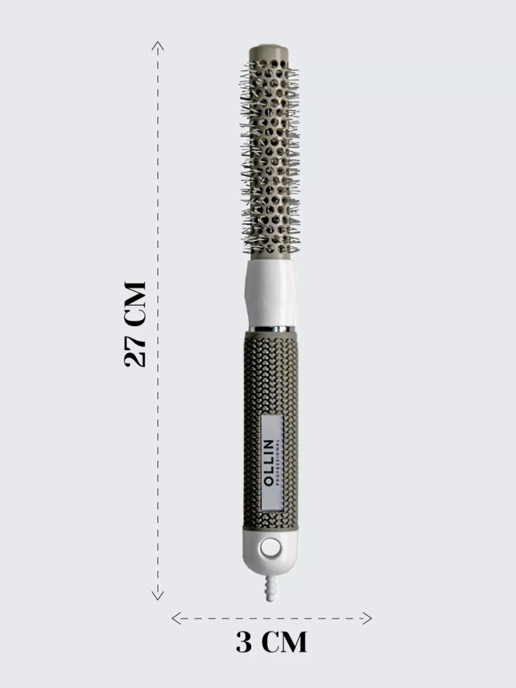 Брашинг OLLIN Professional с нейлоновой щетиной диаметром 19 мм — компактный профессиональный инструмент для детальной проработки причёски и создания выраженного прикорневого объёма.