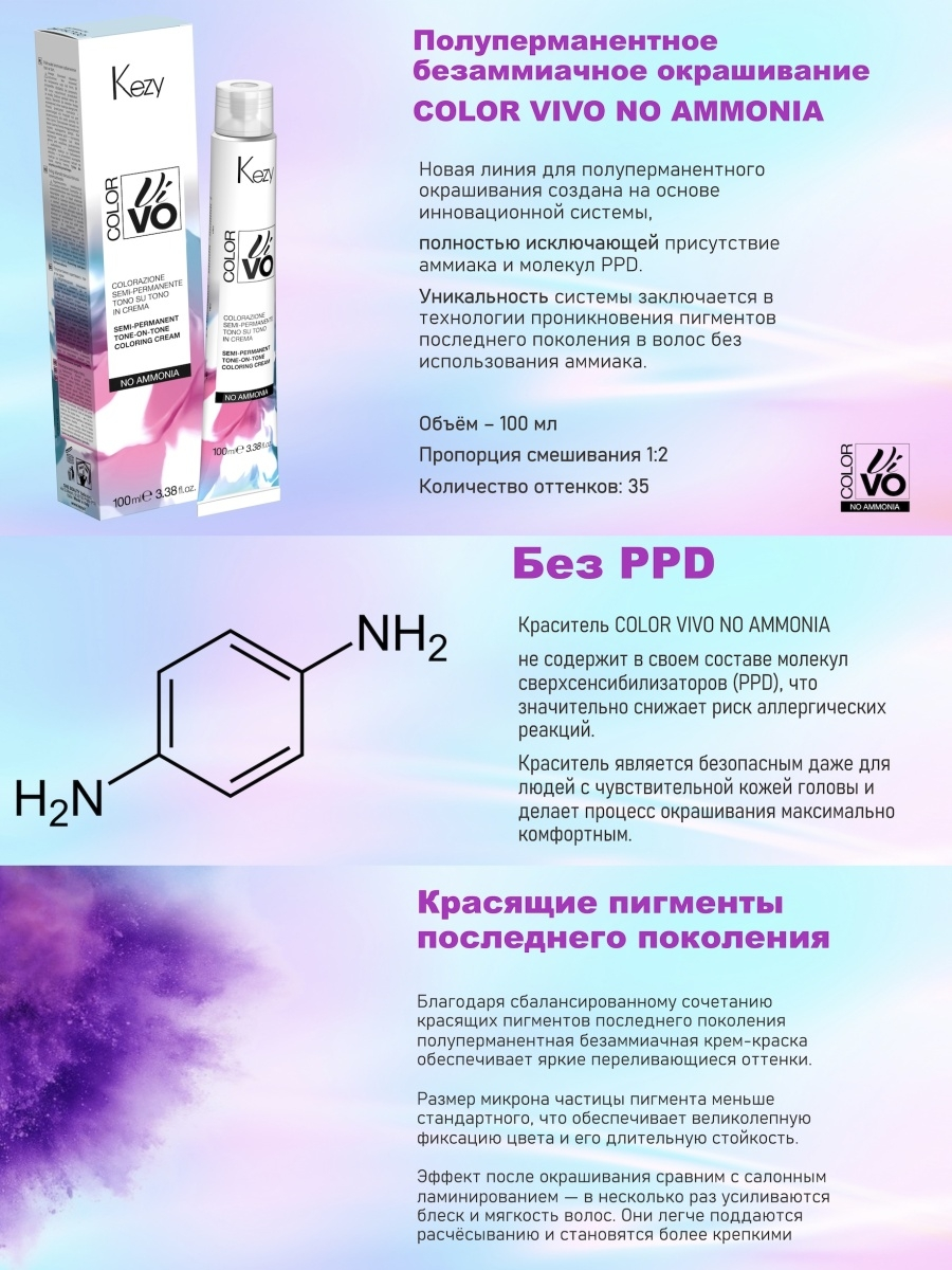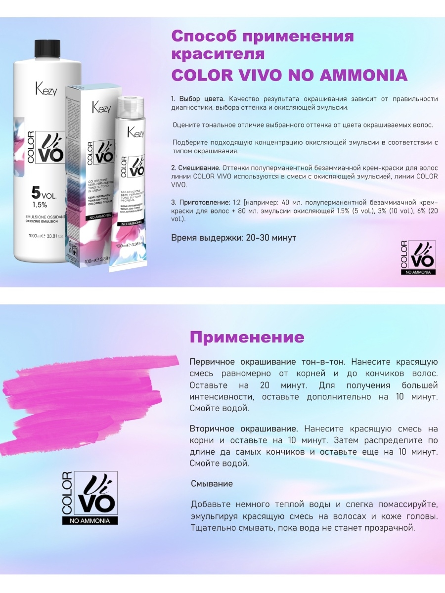 | Линия бренда | COLOR VIVO NO AMMONIA – безаммиачная крем-краска для волос | Другие товары |