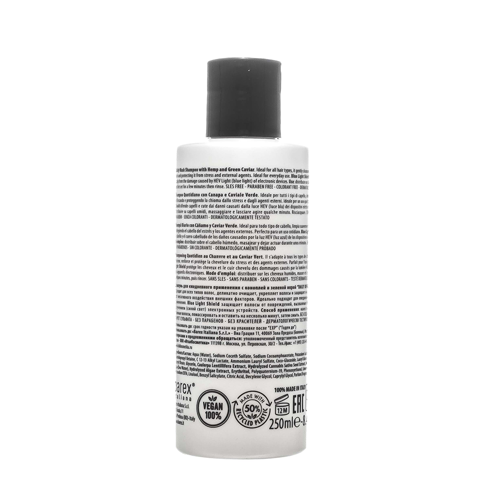 Шампунь для ежедневного применения с коноплей и зеленой икрой JOC CARE DAILY DEFENCE идеально подходит для всех типов волос, деликатно очищает, укрепляет волосы и защищает их от повреждений и от негативного воздействия внешних факторов. Идеально подходит для ежедневного применения. Blue Light Shield защищает волосы от повреждений, вызванных HEV-излучением (синий свет) электронных устройств....