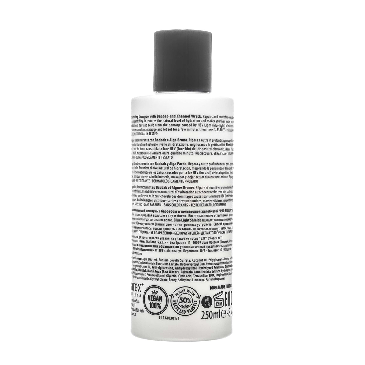 Шампунь восстанавливающий с баобабом и пельвецией желобчатой JOC CARE PRO-REMEDY восстанавливает и глубоко питает, придавая волосам силу и блеск. Восстанавливает естественный уровень увлажнения и облегчает расчесывание волос. Blue Light Shield защищает волосы от повреждений, вызванных HEV-излучением (синий свет) электронных устройств. Дерматологически тестирован.