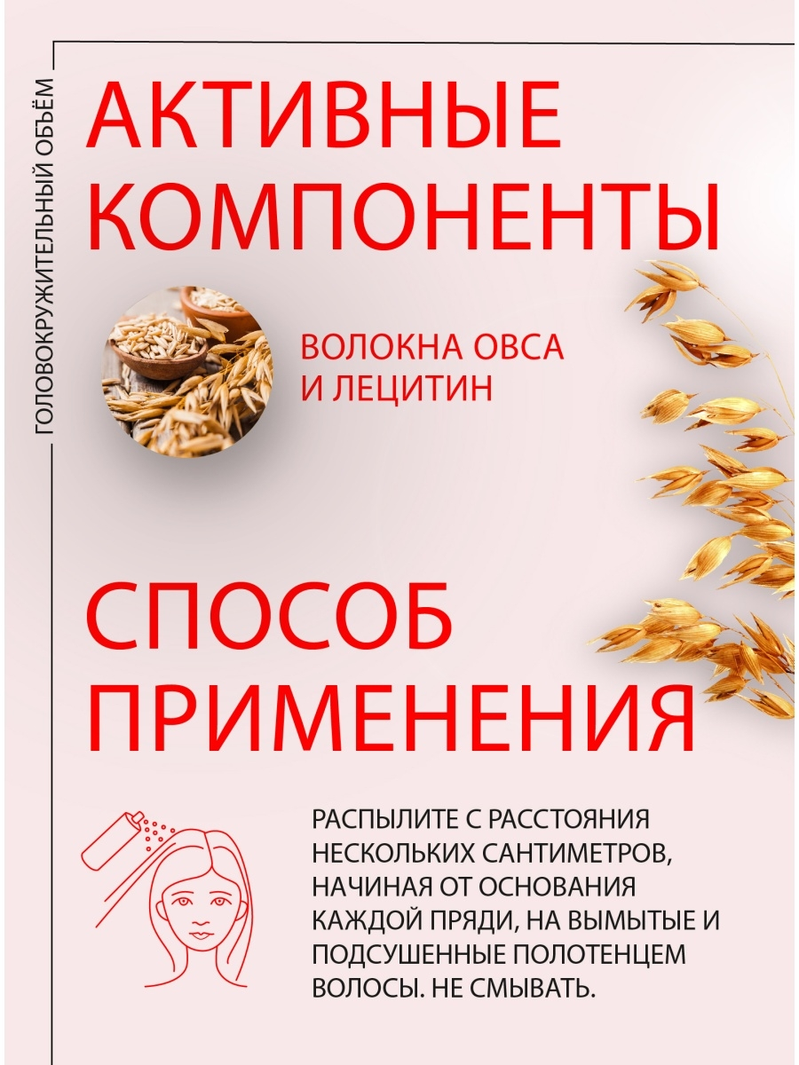 Специальный спрей без газа идеально подойдет для придания дополнительного объема тонким и лишенным природной пышности волосам. Добавляет прикорневой объем любой прическе, выгодно подчеркивая её текстуру. Обеспечивает мягкую и естественную фиксацию, не склеивая и не утяжеляя волосы. Имеет лёгкую степень фиксации.