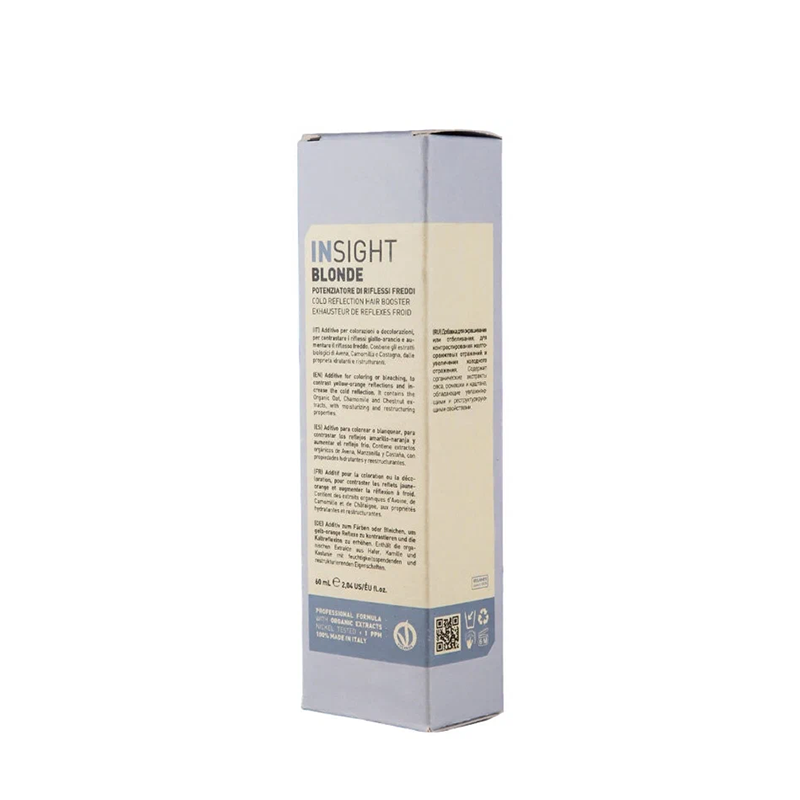 Усилитель холодных оттенков для волос. Добавка для окрашивания или обесцвечивания волос, для нейтрализации желто-оранжевых оттенков и усиления холодного оттенка. Цветовой бустер для холодных оттенков насыщает обесцвечивающую смесь сине-фиолетовым пигментом, который в процессе осветления работает на нейтрализацию. Содержит органические экстракты овса, ромашки и каштана, обладающие увлажняющими и восстановительными свойствами.
